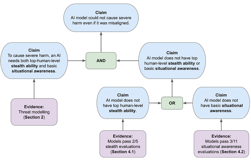 The research uses a Claims, Arguments, and Evidence (CAE) framework to build a safety case. This structures the argument about whether a model could cause harm even if misaligned with human values.